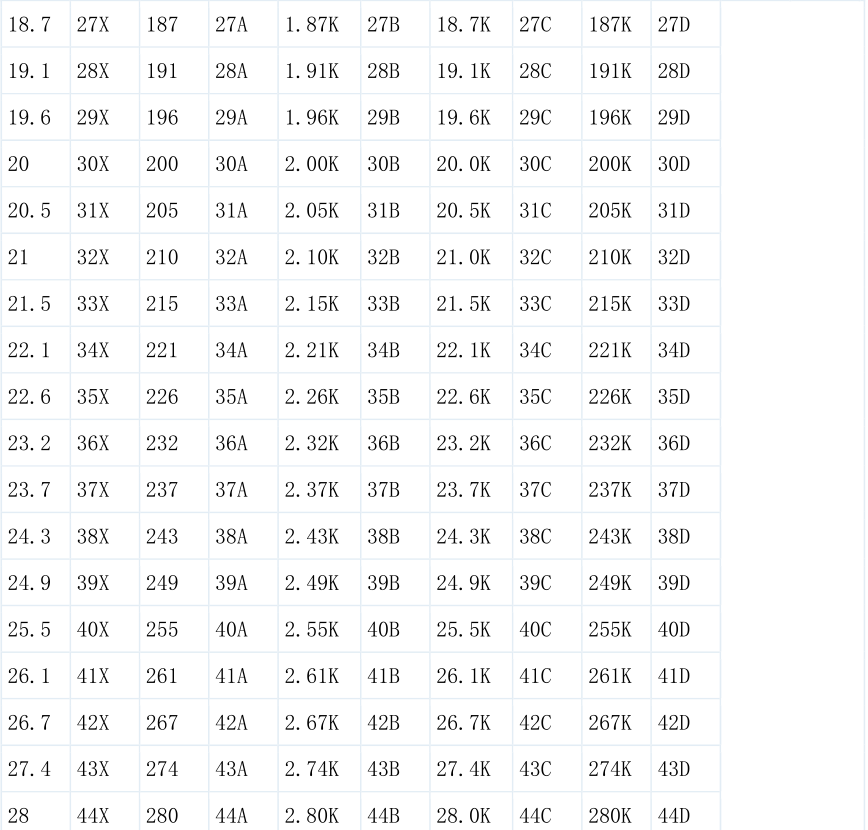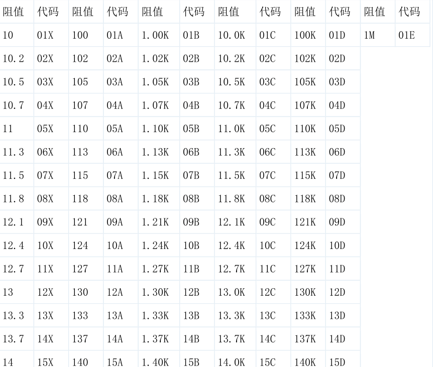 精密貼片電阻阻值對照表1